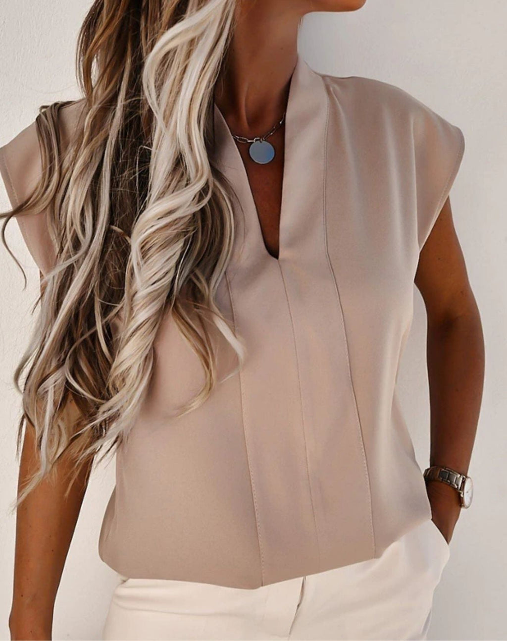 A BLUSA STREETWEAR COM MANGAS CURTAS é a peça chic e elegante que não pode faltar no seu guarda-roupas, podendo ser combinada de diversas maneiras e ser usada em todas as estações, tanto no dia a dia para o trabalho, quanto para saídas, festas e eventos. Possui um caimento perfeito, mangas curtas, decote V e uma leve gola traseira.