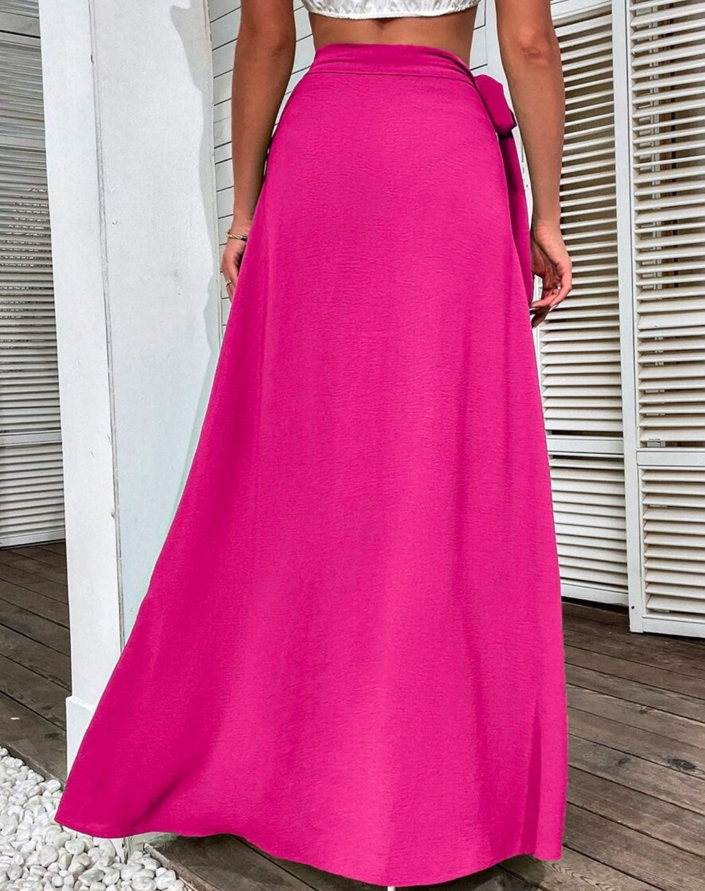 Desejando a saia perfeita? Acabou de achar, a SAIA MAXI COM CINTURA TRANSPASSADA é incrivelmente linda para várias ocasiões importantes, seja no trabalho, em passeios diurnos ou saídas noturnas. Abuse da sua criatividade ao montar o seu look com essa peça elegante e se apaixone. Possui transpasse na cintura, possibilitando uma amarração, comprimento longo, fenda lateral e tecido fluído.