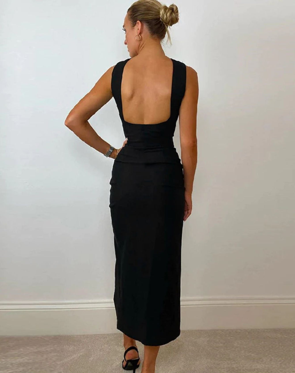O pretinho nada básico que você vai amar. O VESTIDO MIDI COM TRANSPASSE NO PESCOÇO é chic e elegante na medida certa para você arrasar em seus eventos e se sentir ainda mais linda. A peça possui transpasse no pescoço, shape justo, fenda lateral, e comprimento midi.